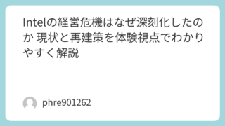 Intelの経営危機はなぜ深刻化したのか 現状と再建策を体験視点でわかりやすく解説 かつて「安定のIntel」と聞くと、私はまず安心感を思い浮かべていました。自作PCでも、法人向けのノートでも、無難に選ぶならIntel。そんな空気が長く続いていたからです。ところがここ数年、その印象は大きく変わりました。検索欄に「intel... 2026.03.15 未分類