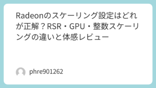 Radeonのスケーリング設定はどれが正解?RSR・GPU・整数スケーリングの違いと体感レビュー 「スケーリング」で迷ったのは、設定名が似すぎていたからはじめてのスケーリング設定を触ったとき、正直いちばん困ったのは「結局どれを使えばいいのかが一目で分からない」ことでした。設定画面にはGPUスケーリング、、整数スケーリングのような似た言葉... 2026.03.15 未分類