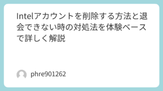 Intelアカウントを削除する方法と退会できない時の対処法を体験ベースで詳しく解説 Intelアカウントを削除したいと思って検索すると、思った以上に情報が散らばっていて戸惑います。実際に調べてみると、「アカウント削除」とひとことで言っても、Intel Communityの退会、Registration Centerの登録情... 2026.03.14 未分類