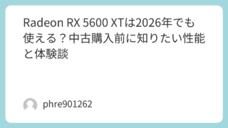 Radeon RX 5600 XTは2026年でも使える?中古購入前に知りたい性能と体験談 をいま調べる人が本当に知りたいことを検索している人の多くは、発売当時の派手なスペック表よりも、「いま買って後悔しないか」「中古でまだ実用になるのか」「実際にゲームをするとどんな感触なのか」を知りたいはずです。私自身、このクラスの少し前のミド... 2026.03.14 未分類