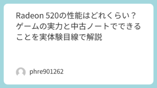 Radeon 520の性能はどれくらい?ゲームの実力と中古ノートでできることを実体験目線で解説 を調べる人が本当に知りたいこと中古ノートPCを見ていると、たまに搭載モデルに出会います。スペック表だけ見ると「専用GPUあり」と書かれていて、少し期待してしまうんですよね。私も最初はそうでした。内蔵グラフィックスだけのノートよりは明らかに上... 2026.03.14 未分類
