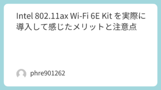 Intel 802.11ax Wi‑Fi 6E Kit を実際に導入して感じたメリットと注意点 私が自作PCのネットワーク環境を強化したくて選んだのが、だ。これはインテル製の Wi‑Fi 6E 規格対応モジュールを搭載したキットで、対応マザーボードに取り付けるだけで高速・低遅延の無線接続と Bluetooth 機能を追加できる製品だ。... 2026.03.14 未分類