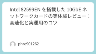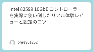 Intel 82599 10GbE コントローラーを実際に使い倒したリアル体験レビューと設定のコツ 私が初めて10ギガビットネットワークを自宅サーバーに導入しようと決めたとき、手元にあったのは古めの 82599 ベースの NIC でした。10GbE による高速転送を期待して、 を購入し、Proxmox サーバーに刺してみたのが最初の挑戦で... 2026.03.14 未分類