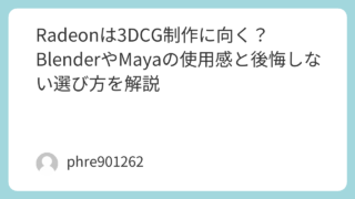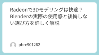 Radeonで3Dモデリングは快適?Blenderの実際の使用感と後悔しない選び方を詳しく解説 で3Dモデリングを始めようと思った理由「3Dモデリングを始めるなら、やっぱりのほうがいいのかな」と迷った時期がありました。実際、私も最初はそう考えていて、3DCGまわりの話題を調べるほど「無難なのは」という空気を強く感じたものです。ただ、現... 2026.03.14 未分類
