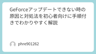 GeForceアップデートできない時の原因と対処法を初心者向けに手順付きでわかりやすく解説 アップデートできない時は、順番に切り分けると直しやすいのアップデートができないと、かなり焦ります。ダウンロードまでは進むのに途中で止まる。インストール失敗と出る。再起動しても状況が変わらない。こういう詰まり方は珍しくありません。私も最初は「... 2026.03.14 未分類
