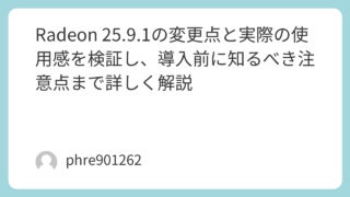 Radeon 25.9.1の変更点と実際の使用感を検証し、導入前に知るべき注意点まで詳しく解説 はどんなアップデートなのかを検索する人の多くは、「今回のドライバは入れて大丈夫なのか」「何が変わったのか」「実際に使っている人の感触はどうなのか」といった、かなり実用的な答えを求めています。単に更新内容を確認したいだけではなく、自分の環境で... 2026.03.14 未分類