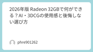 2026年版 Radeon 32GBで何ができる?AI・3DCGの使用感と後悔しない選び方 「Radeon 32GB」が気になって検索した人へ、最初に伝えたいこと「Radeon 32GB」と検索すると、最初は“VRAMが32GBあるグラフィックボード全般”を探しているつもりでも、調べれば調べるほど、実際には用途がかなり絞られている... 2026.03.14 未分類