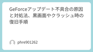 GeForceアップデート不具合の原因と対処法、黒画面やクラッシュ時の復旧手順 アップデート不具合は珍しくないのアップデート後に不具合が出ると、まず「グラボが壊れたかもしれない」と身構えます。自分も最初に黒画面へ切り替わったときは、正直かなり焦りました。ところが実際は、ハード故障ではなくドライバ更新がきっかけで不安定に... 2026.03.14 未分類