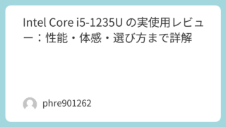 Intel Core i5‑1235U の実使用レビュー:性能・体感・選び方まで詳解 第 12 世代モバイル向け CPU である Intel Core i5‑1235U は、実用性能と省電力性のバランスを追求した設計が特徴です。ノート PC に搭載したときの印象を中心に、スペックやパフォーマンスを丁寧にレビューします。第 1... 2026.03.13 未分類