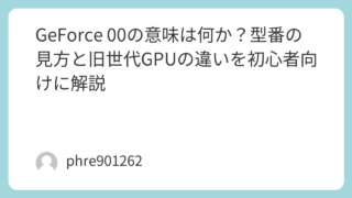 GeForce 00の意味は何か?型番の見方と旧世代GPUの違いを初心者向けに解説 「geforce 00」と検索すると、何の製品を指しているのか分かりにくくて戸惑います。実際、私も中古PCや古いグラフィックボードを見ているときに、型番の途中にある「00」が何を意味しているのか曖昧なまま調べ始めたことがありました。結論から... 2026.03.13 未分類