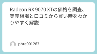 Radeon RX 9070 XTの価格を調査、実売相場と口コミから買い時をわかりやすく解説 の価格は今どう動いているのかの価格が気になって検索する人の多くは、「定価はいくらだったのか」よりも、いま実際にいくらで買えるのかを知りたいはずです。さらに言えば、安いモデルを選んで後悔しないか、少し高い上位モデルにする意味があるのか、そこま... 2026.03.13 未分類