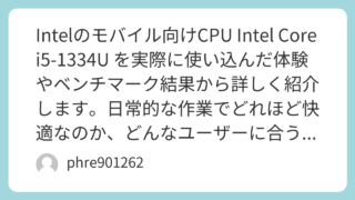 Intelのモバイル向けCPU Intel Core i5‑1334U を実際に使い込んだ体験やベンチマーク結果から詳しく紹介します。日常的な作業でどれほど快適なのか、どんなユーザーに合うのかを深掘りしました。 タイトルIntel Core i5‑1334Uを使い倒した実体験レビュー|性能・ベンチ比較と快適度評価記事本文Intel Core i5‑1334Uとは第13世代のモバイル向けCPUとして登場した Intel Core i5‑1334U は... 2026.03.13 未分類