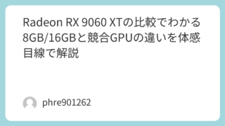 Radeon RX 9060 XTの比較でわかる8GB/16GBと競合GPUの違いを体感目線で解説 を比較したい人が先に知るべき結論を比較検討している人が本当に知りたいのは、細かな仕様表よりも「自分の遊び方ならどれを選べば後悔しにくいのか」という一点ではないでしょうか。実際にこのクラスのGPUを選ぶ場面では、数字の差より、ゲームを起動した... 2026.03.13 未分類