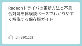 Radeonドライバの更新方法と不具合対処を体験談ベースでわかりやすく解説する保存版ガイド ドライバは「入れる」より「失敗しない」が大事ドライバについて調べている人の多くは、ただ最新版を入れたいわけではありません。実際には「どこから入れれば安全なのか」「更新したあとに不具合が出ないか」「もし調子が悪くなったら元に戻せるのか」といっ... 2026.03.13 未分類