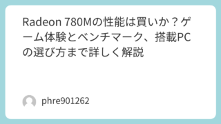 Radeon 780Mの性能は買いか?ゲーム体験とベンチマーク、搭載PCの選び方まで詳しく解説 は本当に“使える内蔵GPU”なのかノートPCやミニPCを見ていると、ここ最近かなりの頻度で見かけるのがです。スペック表では高性能な内蔵GPUとして紹介されることが多く、「外付けGPUなしでもゲームができる」「普段使いなら十分どころかかなり快... 2026.03.13 未分類