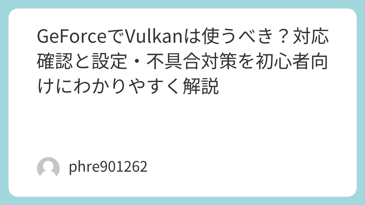 GeForceを使っていると、ゲームやエミュレーター、3D系のアプリで「Vulkan」という項目を見かけることがあります。私も最初は、正直そこまで気にしていませんでした。初期のころは「よく分からない描画方式のひとつ」くらいの認識で、動けばそれで十分だと思っていたからです。