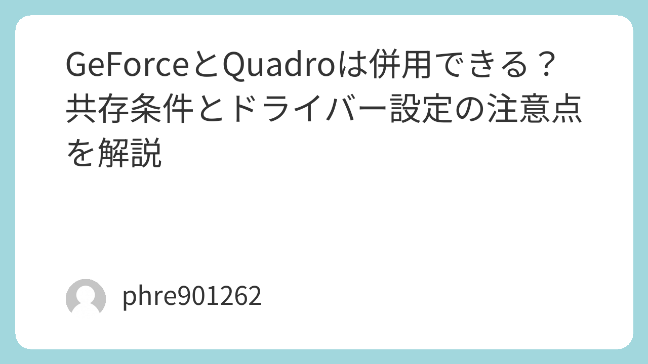 GeForceQuadroを1台のPCで動かすこと自体は不可能ではありません。ただし、別々のNVIDIAドライバーを同時に入れて使う形はできず、両方を1本の対応ドライバーで面倒を見るのが前提です。しかもNVIDIA系の案内では、GeForceQuadroの混在は予測不能な結果を招く可能性があるため、サポート構成として強く勧めるものではないという温度感です。ここを知らずに始めると、最初のインストール段階でかなり消耗します。 (NVIDIA Developer Forums)