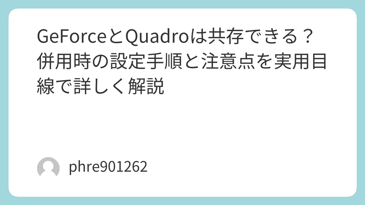 GeForceQuadroは共存できます。ただし、成功のポイントは「差せるか」ではなく、「役割を分けて安定して使えるか」にあります。