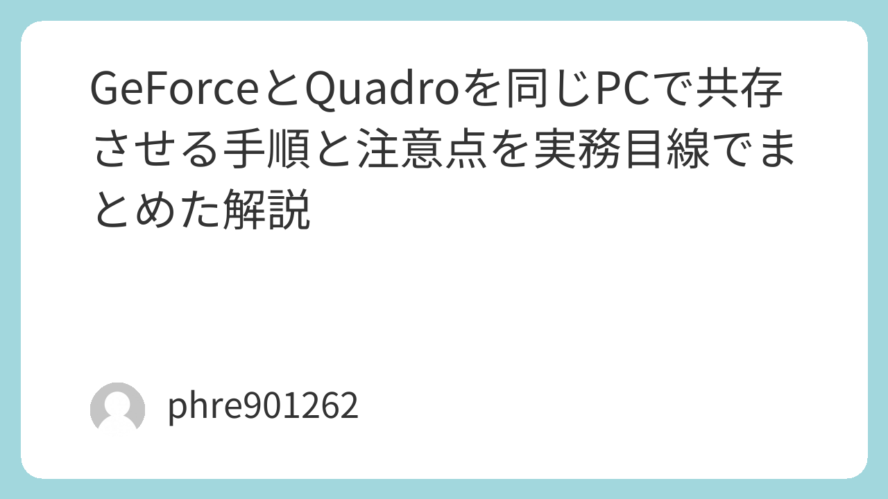 このテーマで遠回りしがちなのは、ゲームも制作も両方を100点で取りにいこうとすることだ。実際は、ゲームが主役ならGeForce中心、制作や業務アプリの安定性が主役ならQuadro中心で組んだほうが、後から悩まない。NVIDIAの案内でも、混在構成で不具合が出たときの最初の切り分けは、片方のカードを外して残した1枚に正しいドライバを入れ直すことだとされている。つまり、最後に頼れるのは“役割を絞った構成”ということだ。 (NVIDIA サポート)