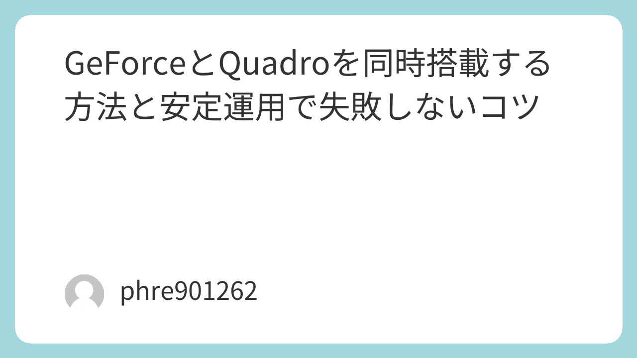 私の感覚では、この構成は「性能を盛る」より「役割を分ける」と考えたほうがうまくいきます。GeForceとQuadroを同居させるなら、別ドライバー運用を狙わず、両対応の1本で整える。さらに、表示担当とアプリ割り当てを早めに決める。この2点だけ外さなければ、かなり安定して使いやすくなります。 (NVIDIA Developer Forums)