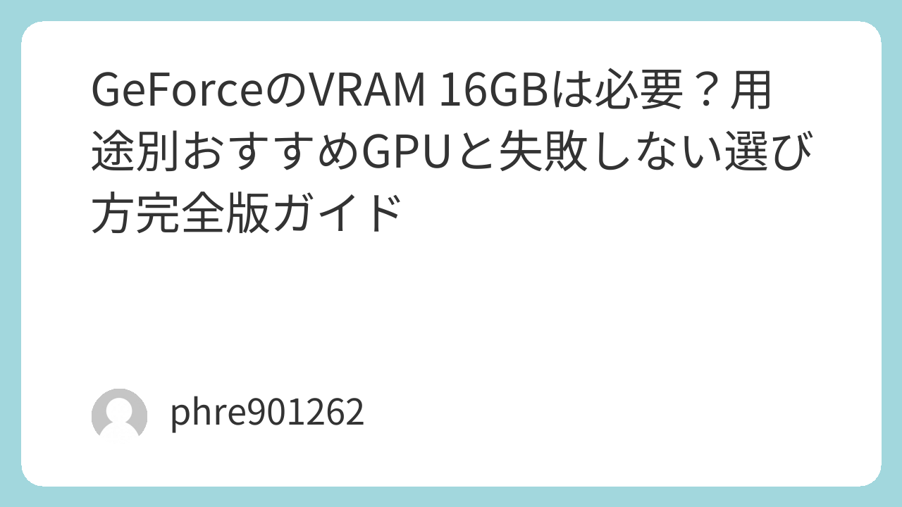 GeForceのVRAM 16GBは必要?用途別おすすめGPUと失敗しない選び方完全版ガイド