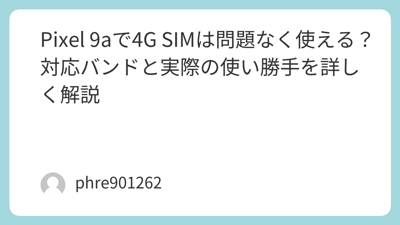Pixel 9aに4GのSIMを挿して使いたい、という人はかなり多いです。とくに格安SIMを長く使っている人や、5G契約にこだわっていない人にとっては、「本当に4Gで困らないのか」がいちばん気になるところでしょう。