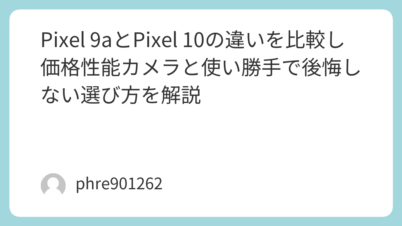 この記事では、Google Pixel 9aとGoogle Pixel 10の違いを、価格、性能、カメラ、バッテリー、使い勝手の順に整理しながら、体験ベースで分かりやすく解説していきます。
