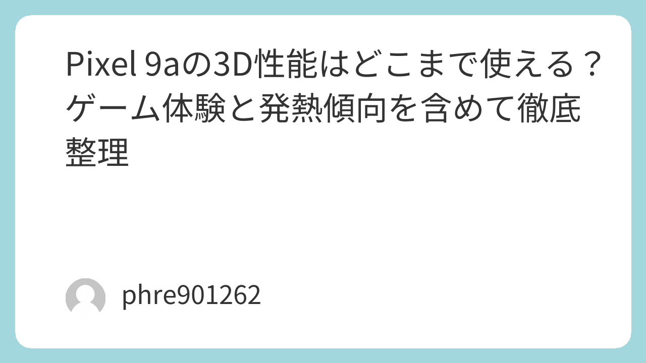 実際にこの価格帯のスマートフォンを選ぶとき、スペック表だけでは見えない部分が多くあります。CPU名やメモリ容量を見ても、実際の操作感や熱の持ち方、長く遊んだときの電池の減り方までは想像しにくいものです。だからこそ、この記事ではPixel 9aの3D性能について、スペックだけでなく、体験ベースでわかりやすく整理していきます。