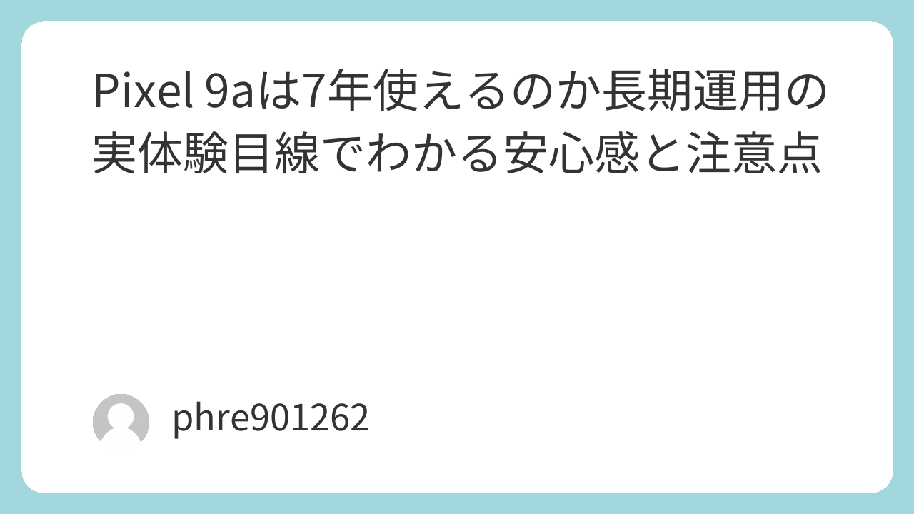 もし「Google Pixel 9aは7年使えるのか」と迷っているなら、答えはかなり前向きです。ただし、それは“性能を追い続ける7年”ではなく、“安心して生活に寄り添う7年”です。その意味で見ると、Google Pixel 9aはとても完成度の高い選択肢だと言えます。