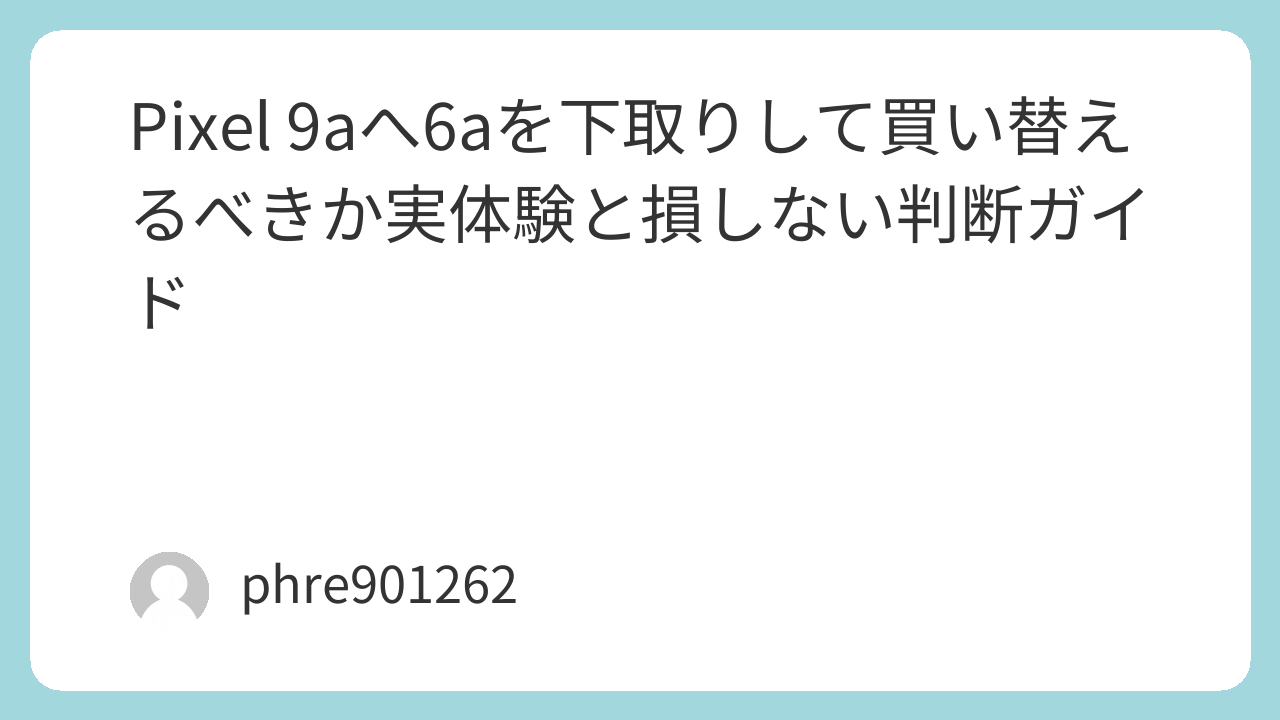 結論としては、下取り額だけで決めるのではなく、実質負担額と数年先までの使いやすさを天秤にかけること。それが、Google Pixel 6aからGoogle Pixel 9aへ気持ちよく買い替えるための、いちばん失敗しにくい考え方です。