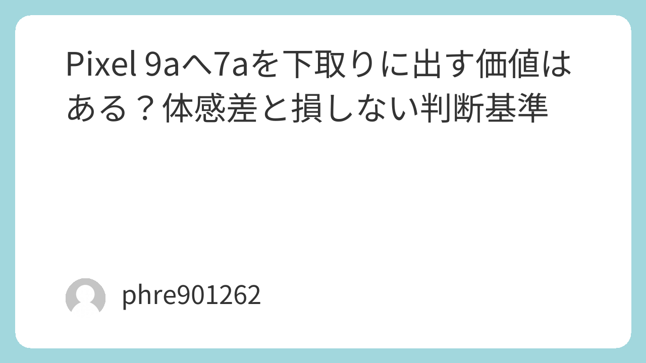 Google Pixel 7aを使っていて、そろそろ買い替えを考え始めたとき、真っ先に気になるのが「Google Pixel 9aに変える意味は本当にあるのか」という点です。しかも今回は、ただの機種変更ではなく下取りが絡みます。今の端末を手放してまで乗り換えるべきかどうかは、価格だけでは決めにくいものです。