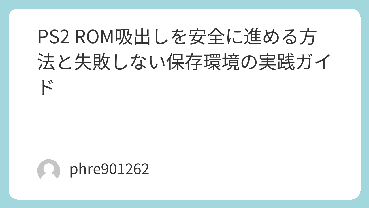 この記事のテーマはあくまでPS2 ROM吸出しなので、まずは手元の正規ディスクをどう安全に保存するかへ集中したほうが迷いません。検索意図に対しても、そのほうがまっすぐ応えられます。