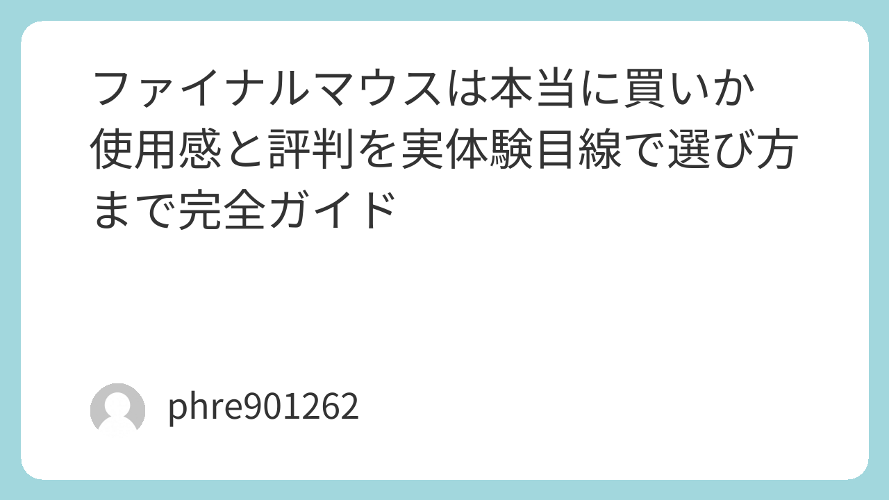 もし今のマウスに少しでも重さのストレスを感じていて、もっと軽快に動かしたいと思っているなら、Finalmouseは一度真剣に検討する価値があります。逆に、コスパや安定感を最優先するなら、あえて別の選択肢を見るのも賢いやり方です。