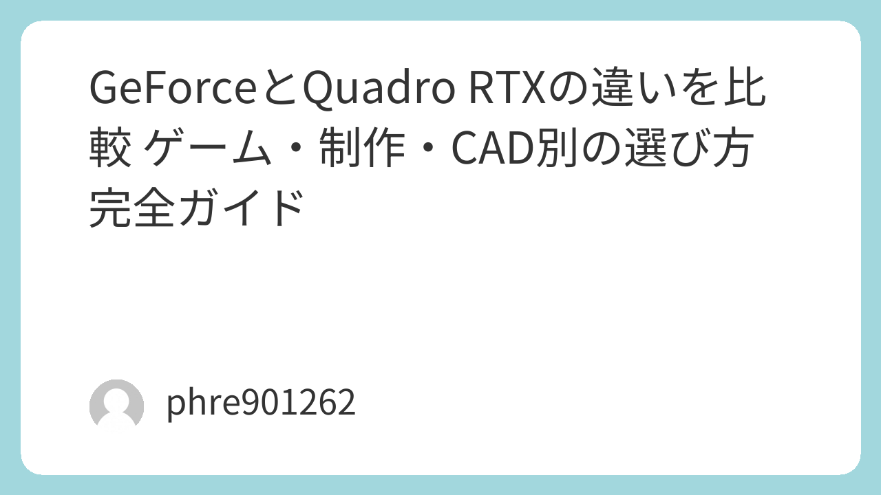 GeForceとQuadro RTXで迷ったとき、自分はまず「遊ぶためのGPUか、仕事を止めないためのGPUか」で切り分けます。ゲーム中心なら基本はGeForce。CADや設計、検証、長時間の業務運用まで含めて安定性を買うならQuadro RTX系を見ます。なお、Quadro RTXは旧世代の呼び方で、今の現行ワークステーション向けはNVIDIA RTX PRO系が中心です。 (NVIDIA)