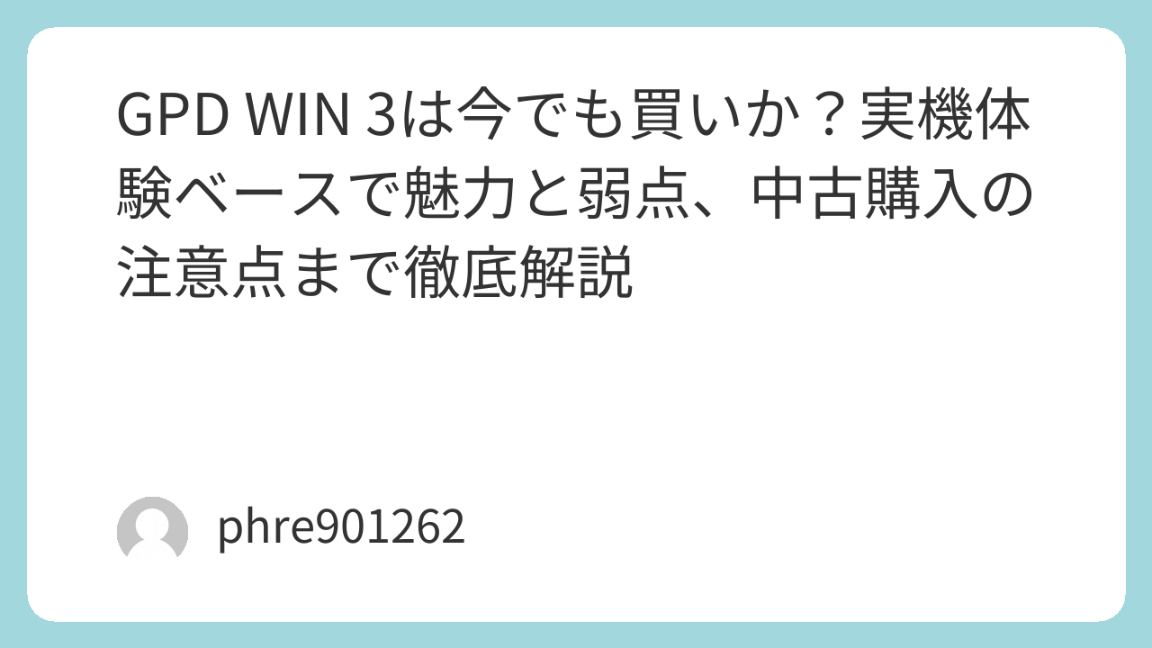 結論として、GPD WIN 3は今でも買う価値があります。ただし、それは万人に向けた答えではありません。条件つきで“アリ”と言える端末です。