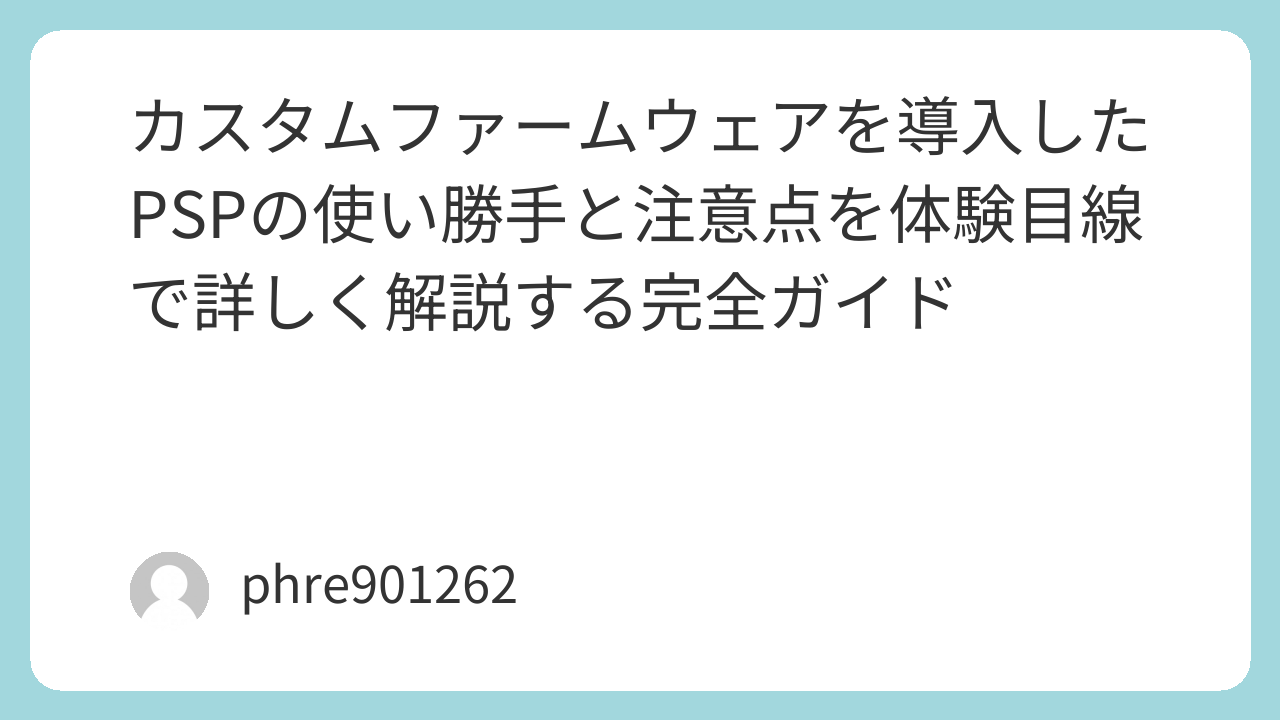 「カスタムファームウェア psp」で検索する人の多くは、単に入れ方を知りたいのではなく、導入したあとに実際どんな変化があるのか、今から触っても楽しめるのか、失敗しやすい点はどこなのかまでまとめて知りたいはずです。
