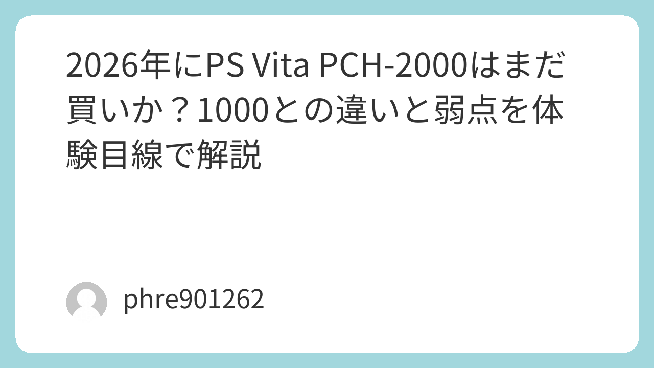 PlayStation Vita PCH-2000で検索する人は、ただ型番を確認したいわけではありません。中古で買って後悔しないか、初代のPlayStation Vita PCH-1000とどちらを選ぶべきか、2026年でも普通に遊べるのか。そこが知りたいはずです。