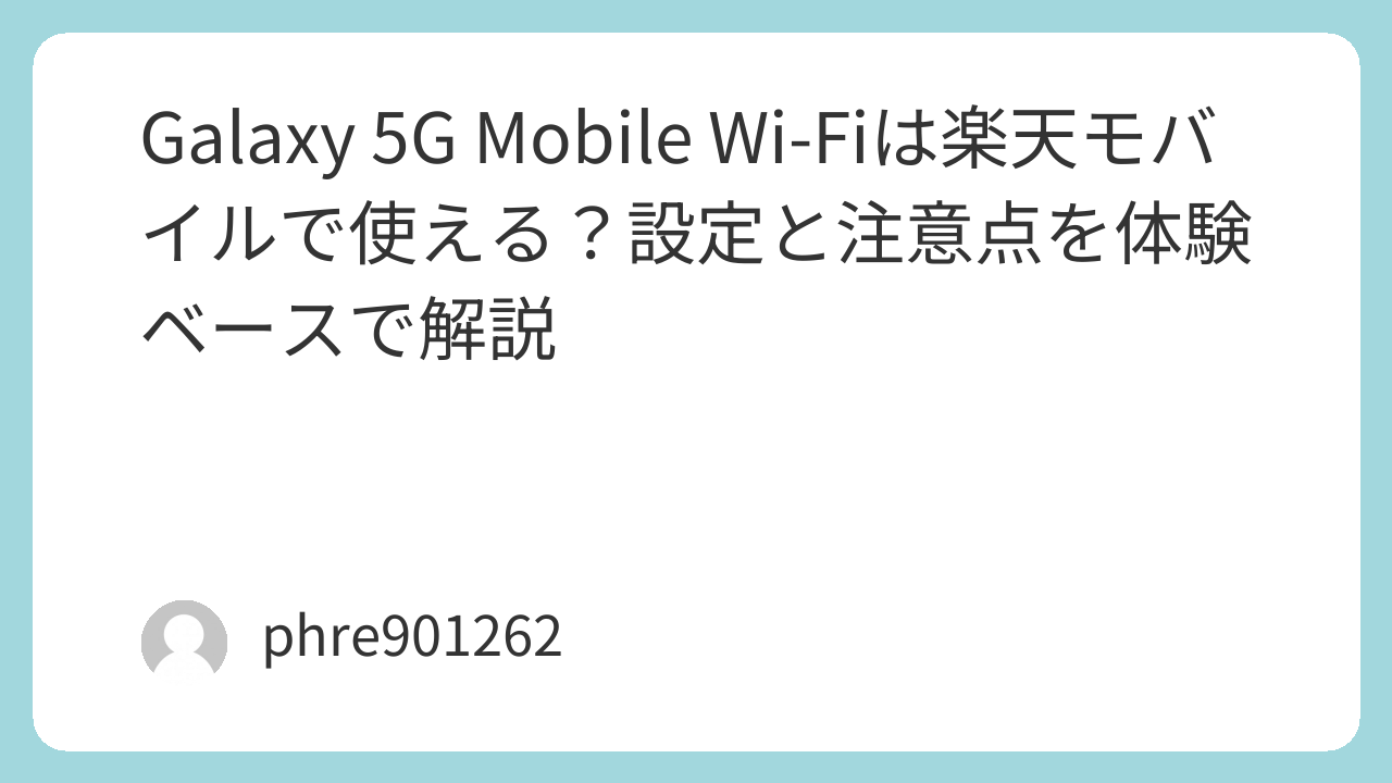 Galaxy 5G Mobile Wi-Fiは楽天モバイルで使える可能性が高いです。ただし、SIMを挿した瞬間に誰でも快適というタイプではありません。楽天モバイル公式も、楽天回線対応製品以外は動作保証対象外としていて、APN自動設定にチェックがない端末は手動設定が必要だと案内しています。ここを見落とすと、「つながらない端末だった」と早合点しやすいです。 (楽天モバイル)