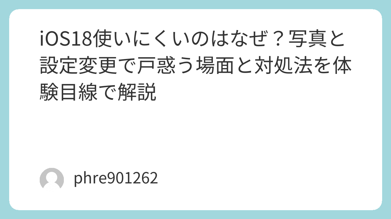 iOS18でしんどいと感じやすいのは、不具合が多いからというより、毎日無意識で触っていた場所の動き方が急に変わったからです。Appleは今回の更新で、ホーム画面、ロック画面、コントロールセンターを“これまでにない形でカスタマイズできる”ようにし、写真まわりも「最大級の再設計」と案内しています。便利になる方向の更新でも、慣れていた動線が崩れると最初の印象はかなり悪くなります。特に「前は考えずにできた操作」で一瞬止まる。この小さな引っかかりが、使いにくさの正体です。 (Apple サポート)