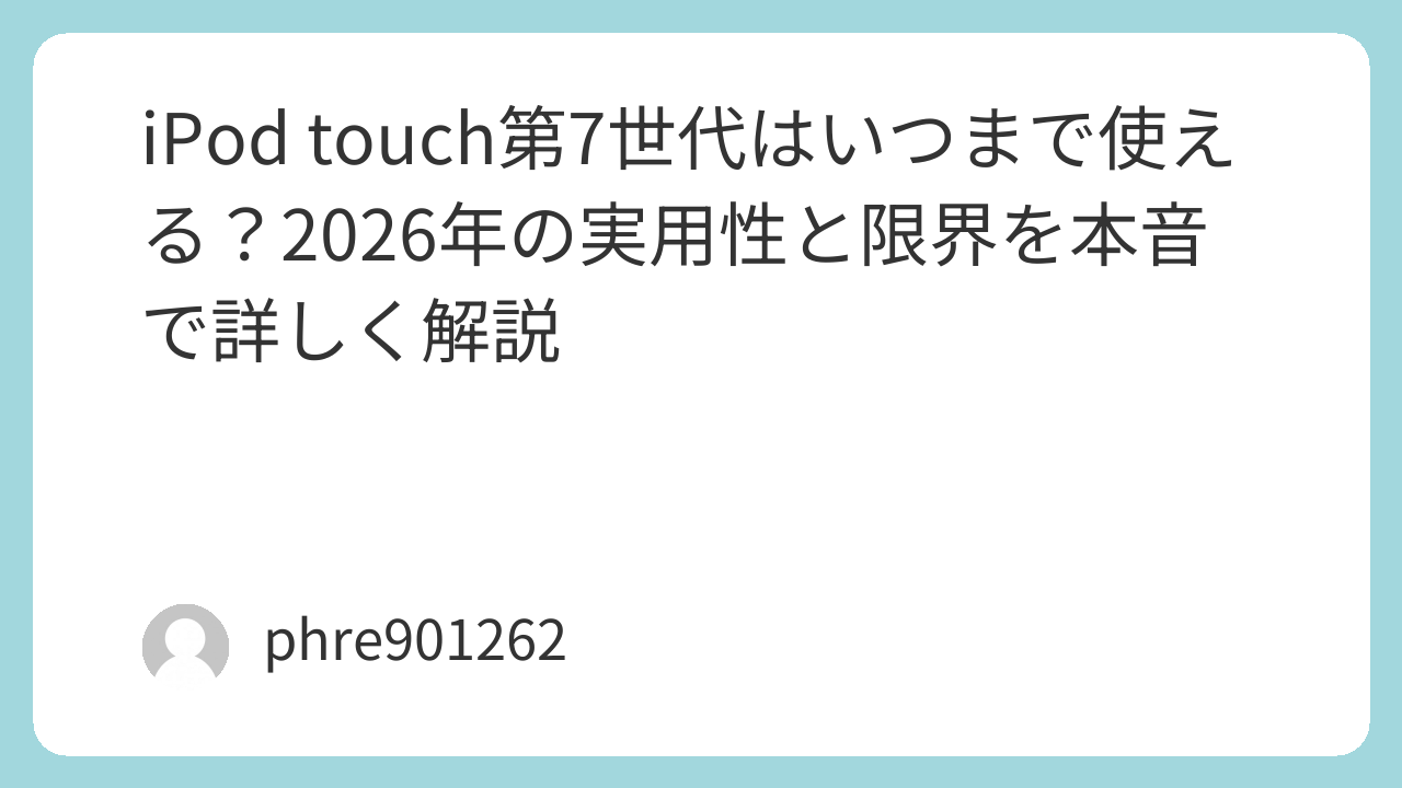 iPod touch 第7世代を今から使うか迷っているなら、結論はかなりはっきりしています。2026年でも、音楽専用機、軽い動画視聴、子ども用のWi-Fi端末、寝る前のサブ機としてならまだ使えます。ただ、メイン端末としてはもう厳しめです。理由は単純で、端末そのものはまだ動く一方、OSの上限とアプリ側の対応終了が効いてくるからです。Appleの公開情報では、iPod touch 第7世代向けにiOS 15.8.7が2026年3月11日に出ていて、少なくとも安全面の延命は続いています。 (Appleサポート)