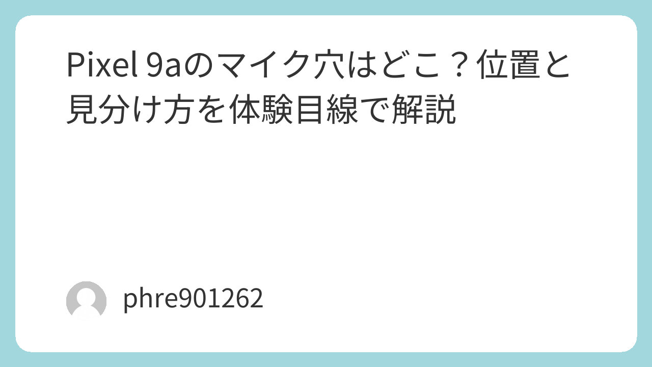この記事では、Google Pixel 9aのマイク穴の位置、見分け方、間違えやすいポイント、声がこもるときの原因、掃除の注意点まで、実際に使う感覚に寄せながら詳しくまとめます。