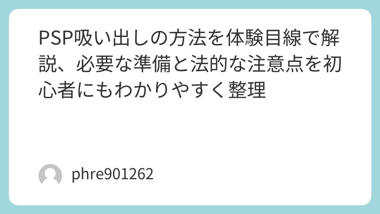 PSPの吸い出しは、作業の流れだけを見るとそこまで複雑ではありません。難しく感じやすいのは、ISOをコピーする瞬間ではなく、その前段階の準備です。特に「本体側で何を用意するのか」「USB接続でどこを切り替えるのか」が最初の壁になりやすいです。先にここを理解しておくと、途中で止まりにくくなります。