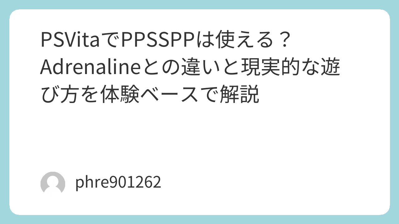 「PPSSPPみたいに何でも自由に拡張できるのでは」と思っていた時期より、「PS Vitaで安定してPSPを遊ぶにはどうするか」に意識を切り替えてからのほうが、判断がかなり楽でした。