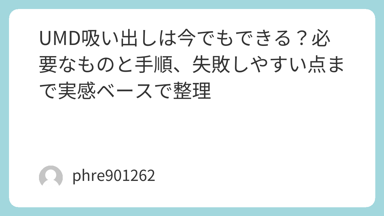 UMD吸い出しは特別な裏技というより、古い機器ならではの少し手順がある作業でした。だからこそ、手順を一つずつ追えば、思っているより落ち着いて進められます。