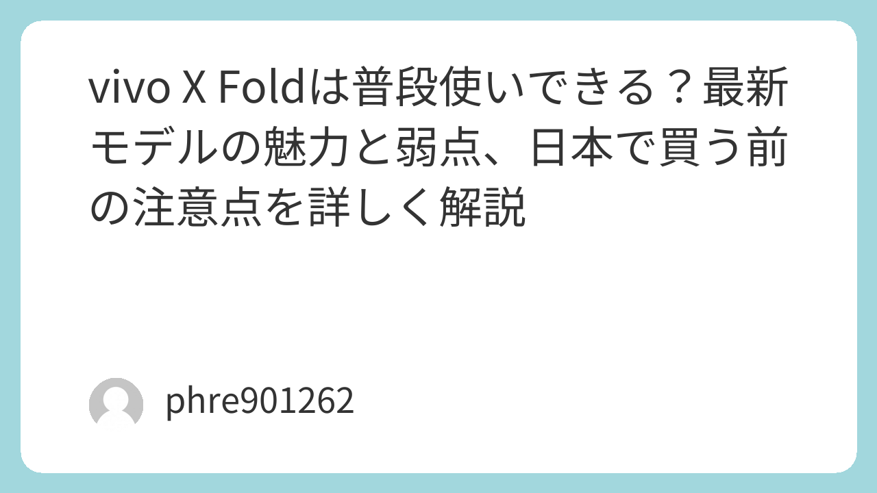 折りたたみスマホをただの変わり種で終わらせたくない人には、vivo X Foldはかなり面白い選択肢です。逆に、買ったあと一切悩みたくない人には、まだ万人向けとは言い切れません。だからこそ、この端末はハマる人には強くハマる一台です。見た目のインパクトより、使い込むほど良さがわかるタイプだと感じます。