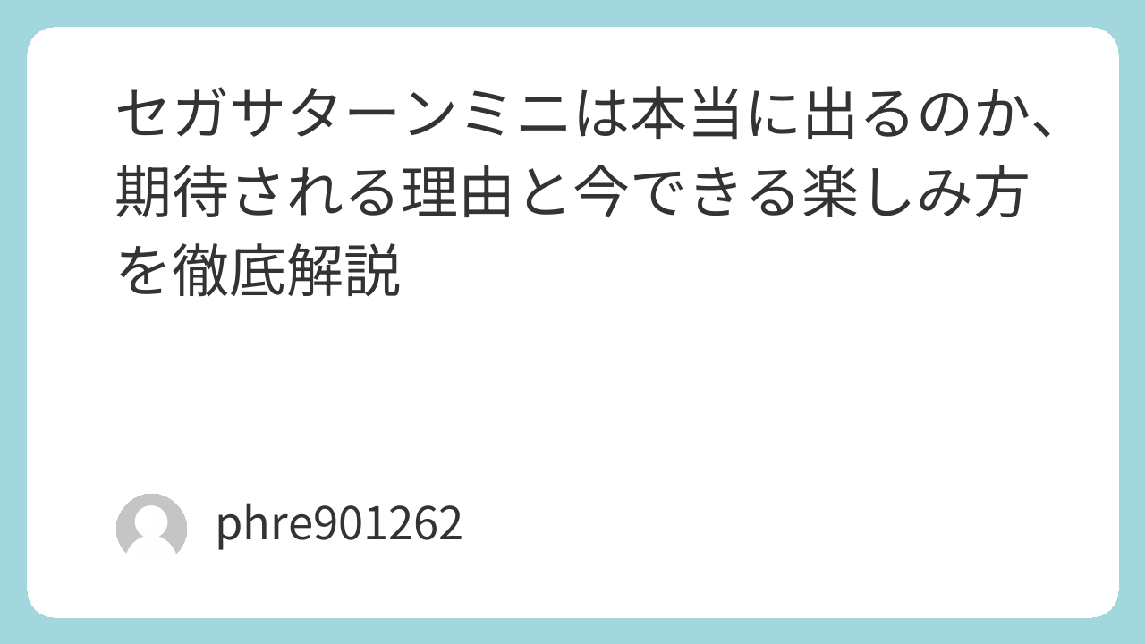 私自身、このテーマに触れるたびに、単なるレトロブーム以上のものを感じます。懐かしいだけではない、今遊んでも面白い作品があり、今の生活に合う形で再会したいと思わせる力があるのです。もし将来、満足度の高いセガサターンミニが登場したら、当時を知る世代だけでなく、初めて触れる人にも強く刺さるはずです。