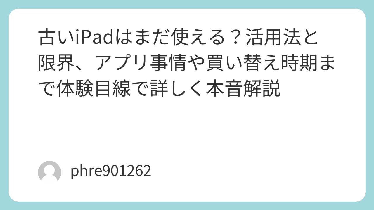 古いiPadは、今でもちゃんと使えます。ここは断言していいです。ただ、その「使える」は最新機種の代わりになるという意味ではありません。役割を絞れば十分便利、全部任せると不満が出る。実際のところ、この線に尽きます。古いiPadを前にして迷っているなら、まずは使い道を1つか2つに絞ってみてください。それでも重さや不便さが気になるなら、そこで初めて買い替えを考えれば十分です。