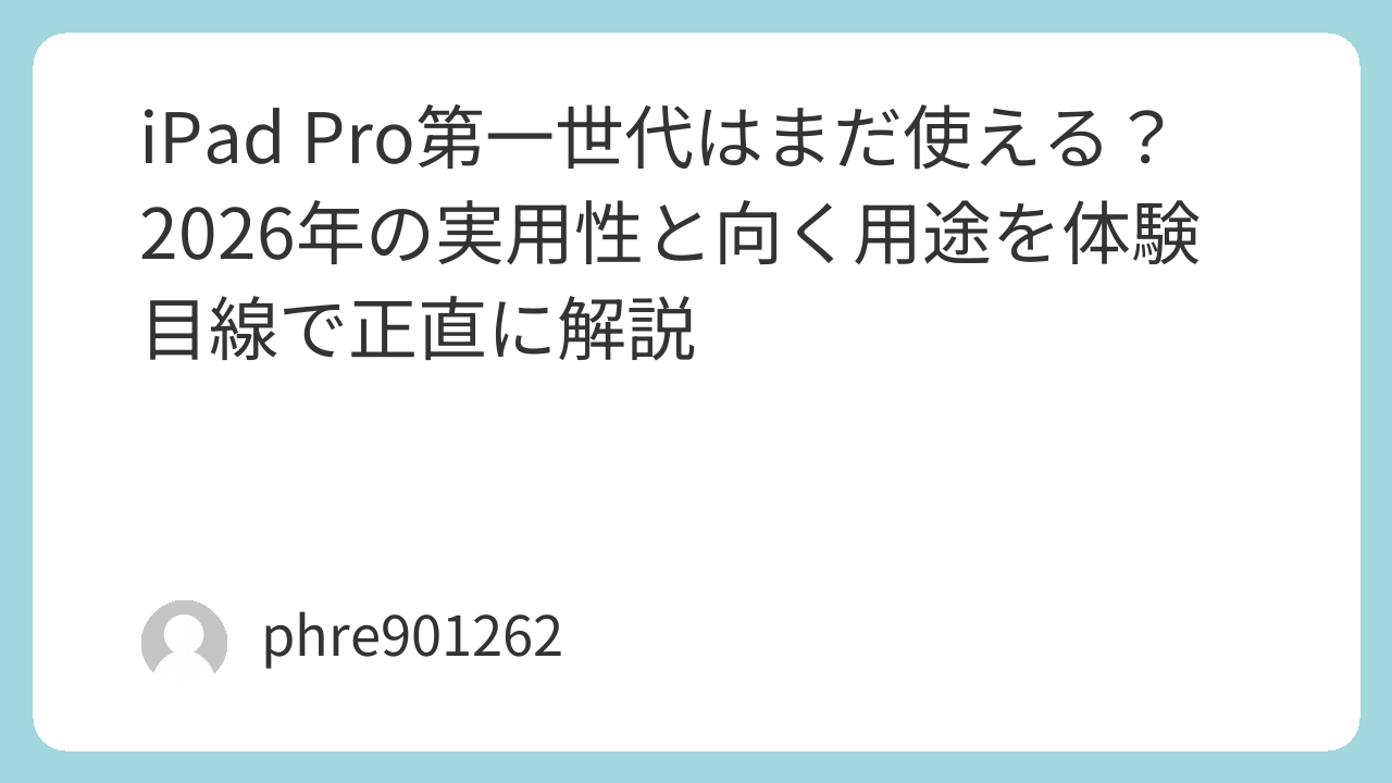 iPad Pro 第一世代は、2026年でもまだ使えます。ただし答えは「人による」ではなく、もっとはっきりしています。サブ機ならまだアリ、メイン機なら厳しめです。これが正直なところです。古い端末としては質感も画面もまだ魅力がありますし、軽い用途では思った以上に粘ります。けれど、最新OSの対象外という現実は重いです。迷っているなら、夢を見すぎず、使い道を先に決める。それだけで失敗しにくくなります。