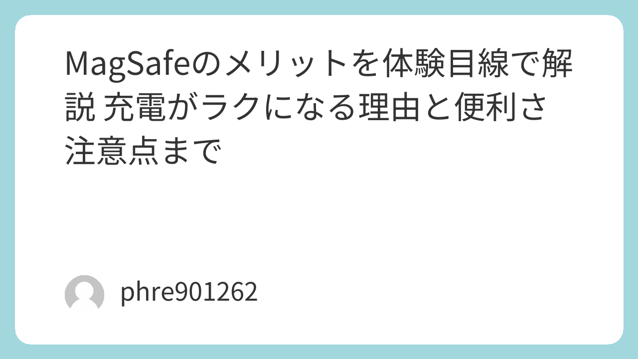 MagSafeは、劇的に生活を変える派手な機能ではありません。ただ、置く、持つ、戻す、付け替える。そういう細かい動きを何度も繰り返す中で、少しずつ便利さが積み上がります。