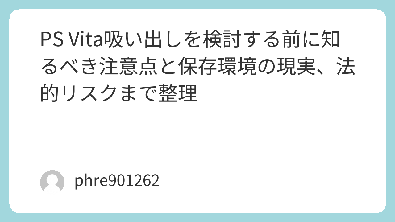 ゲームカードのデータを抜きたいのか、本体のセーブデータを守りたいのか、あるいは手元のPS Vitaを長く使うためにバックアップ環境を作りたいのか。実際には、この3つを同じ言葉で探している人がかなり多い印象です。
